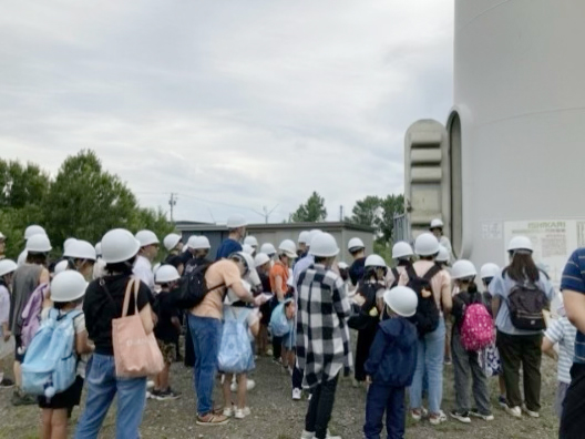 風車見学では「大きいね!」「タワーの中に入れておもしろい!」といった声があがり、迫力ある風車を間近で体験しました。